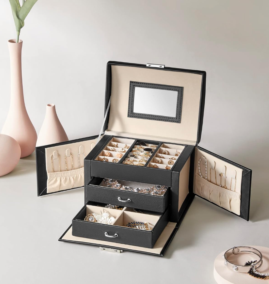 Luxury 3 Tier Jewellery Case / Leather