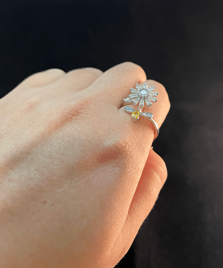 Whatever the reason, you need a little pick-me-up. And that's where our Mia Flower & Bee Anxiety Ring comes in.
