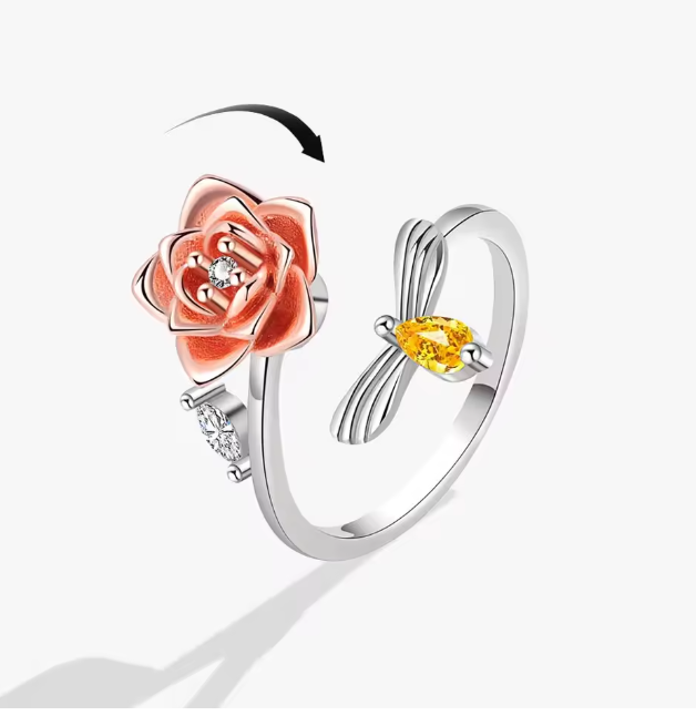 Featuring a beautifully crafted red rose and a charming golden bee, this anxiety spinner ring is as soothing as it is stunning.