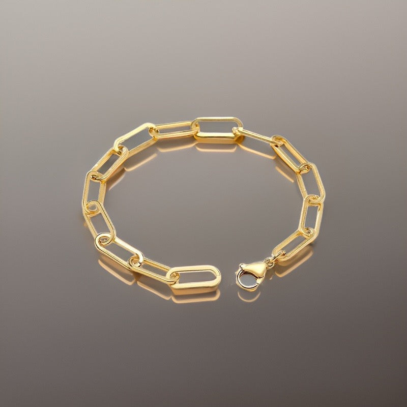 Introducing the stunning Aurora Minimalist Clip Chain Bracelet - an 18K Gold Plated masterpiece that exudes sophistication and style!