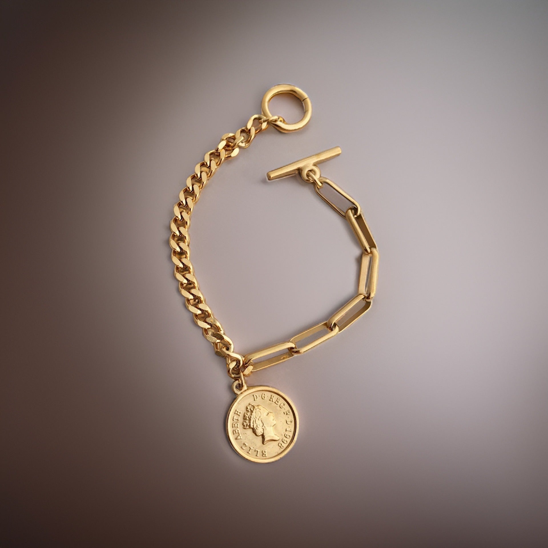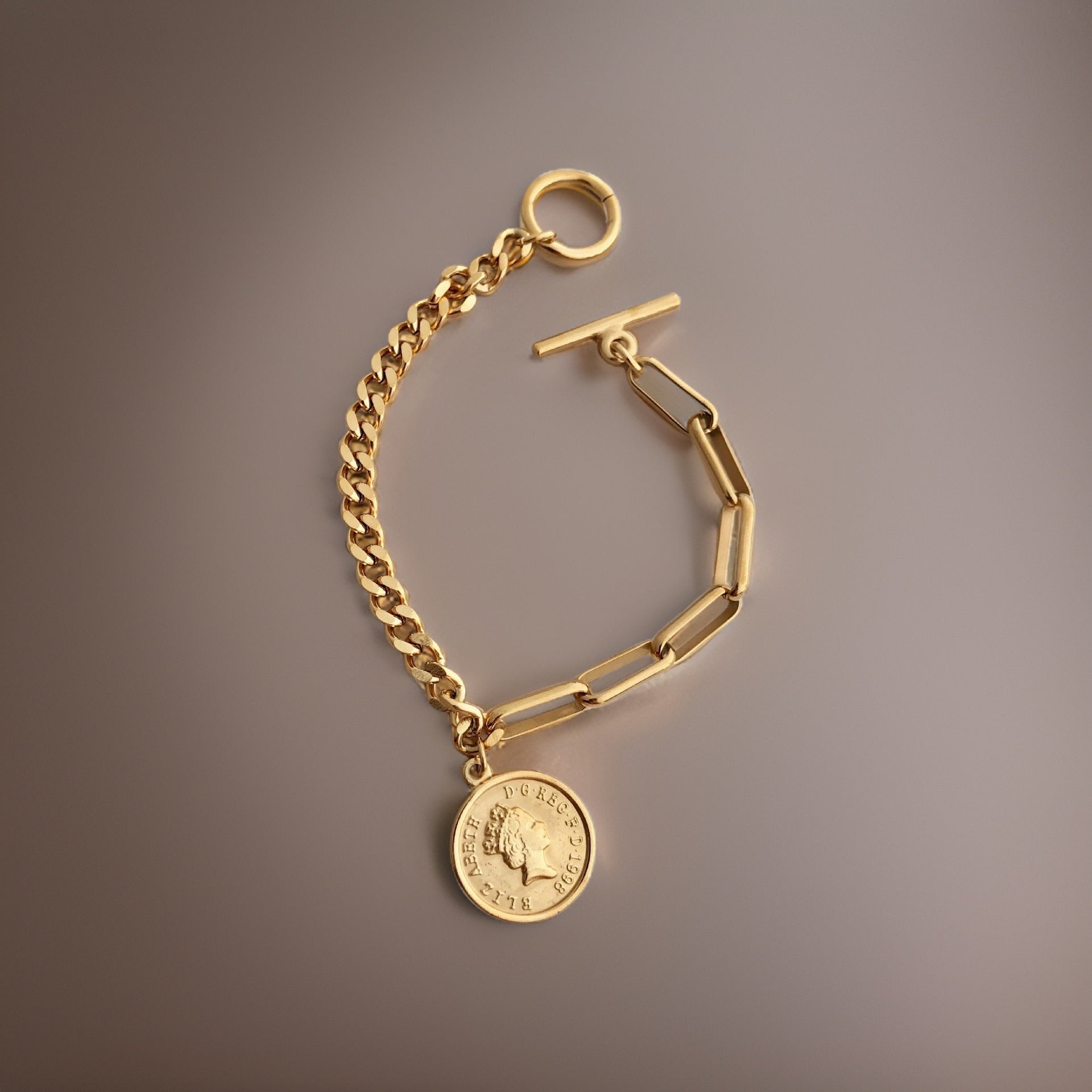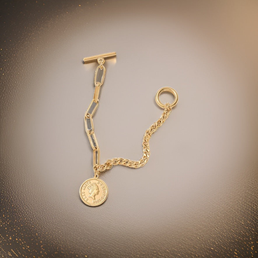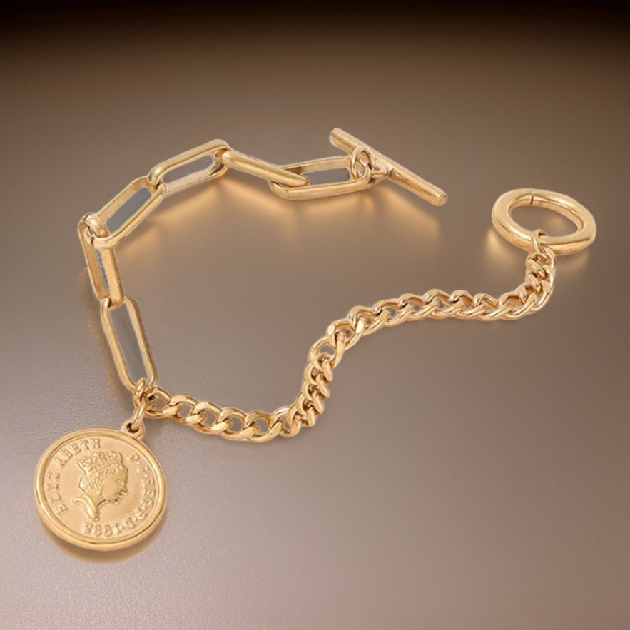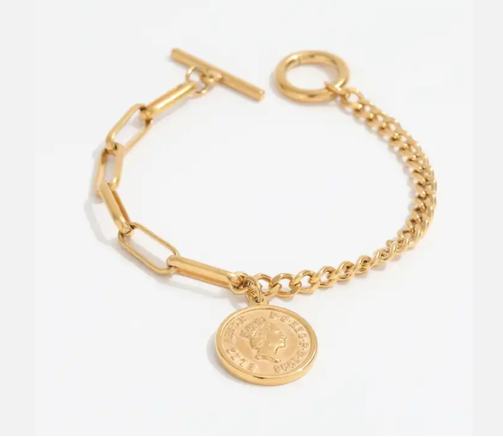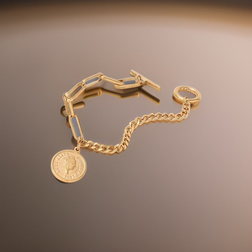 Get ready to turn heads and make a statement with the Bethany Coin Charm Bracelet - the perfect accessory for any occasion!