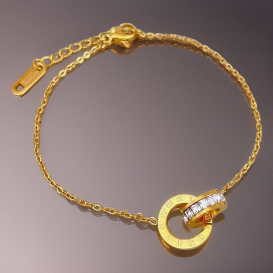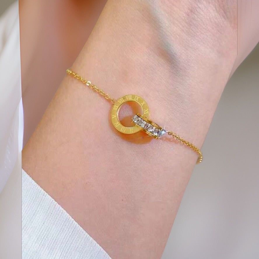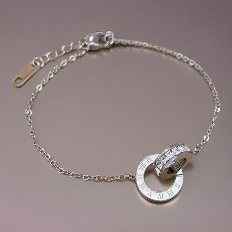 This stainless steel stunner is not your average bracelet; it's a double trouble combo of Roman numerals and sparkly crystals. Talk about a wrist party that's all business in the front and a disco in the back!
