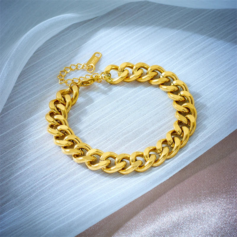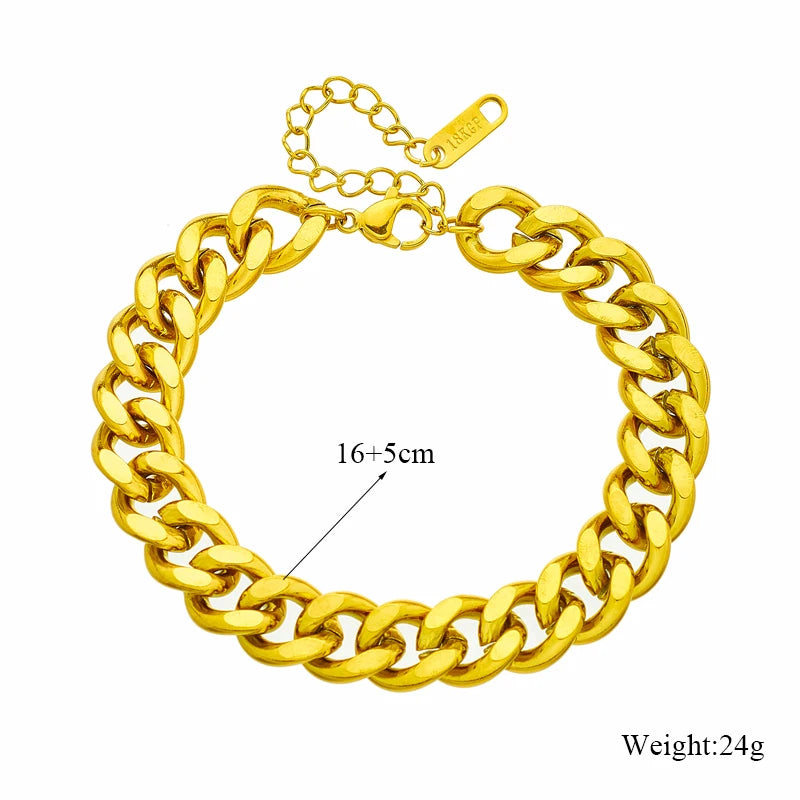 Crafted with care, this 18k gold plated bracelet features a stunning Cuban link chain, exuding a timeless charm that complements any outfit.