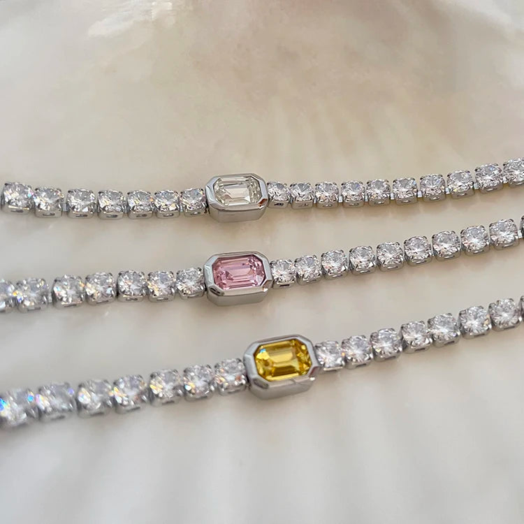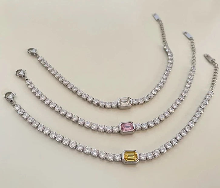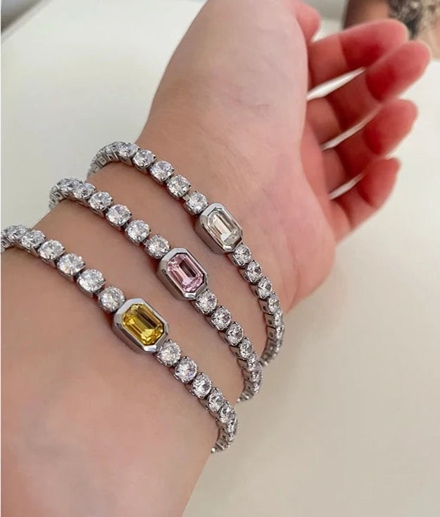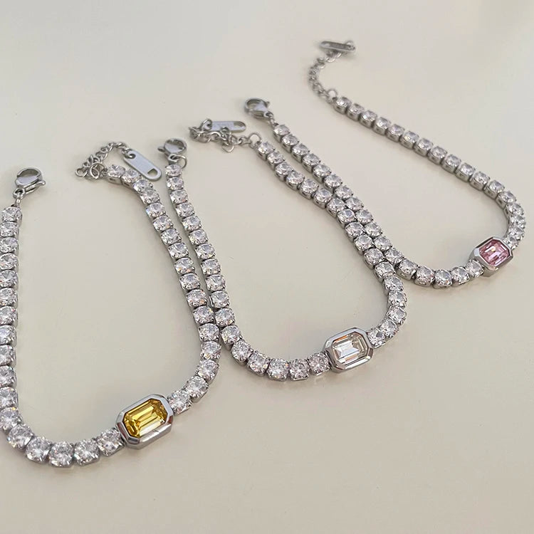 Crafted with stainless steel, these bracelets feature square zircon diamonds delicately placed along the band, adding a touch of sparkle to your wrist.