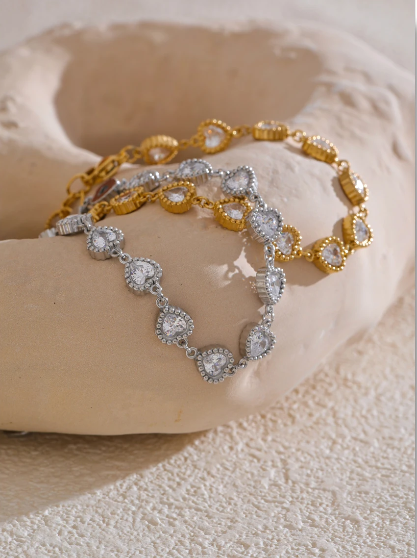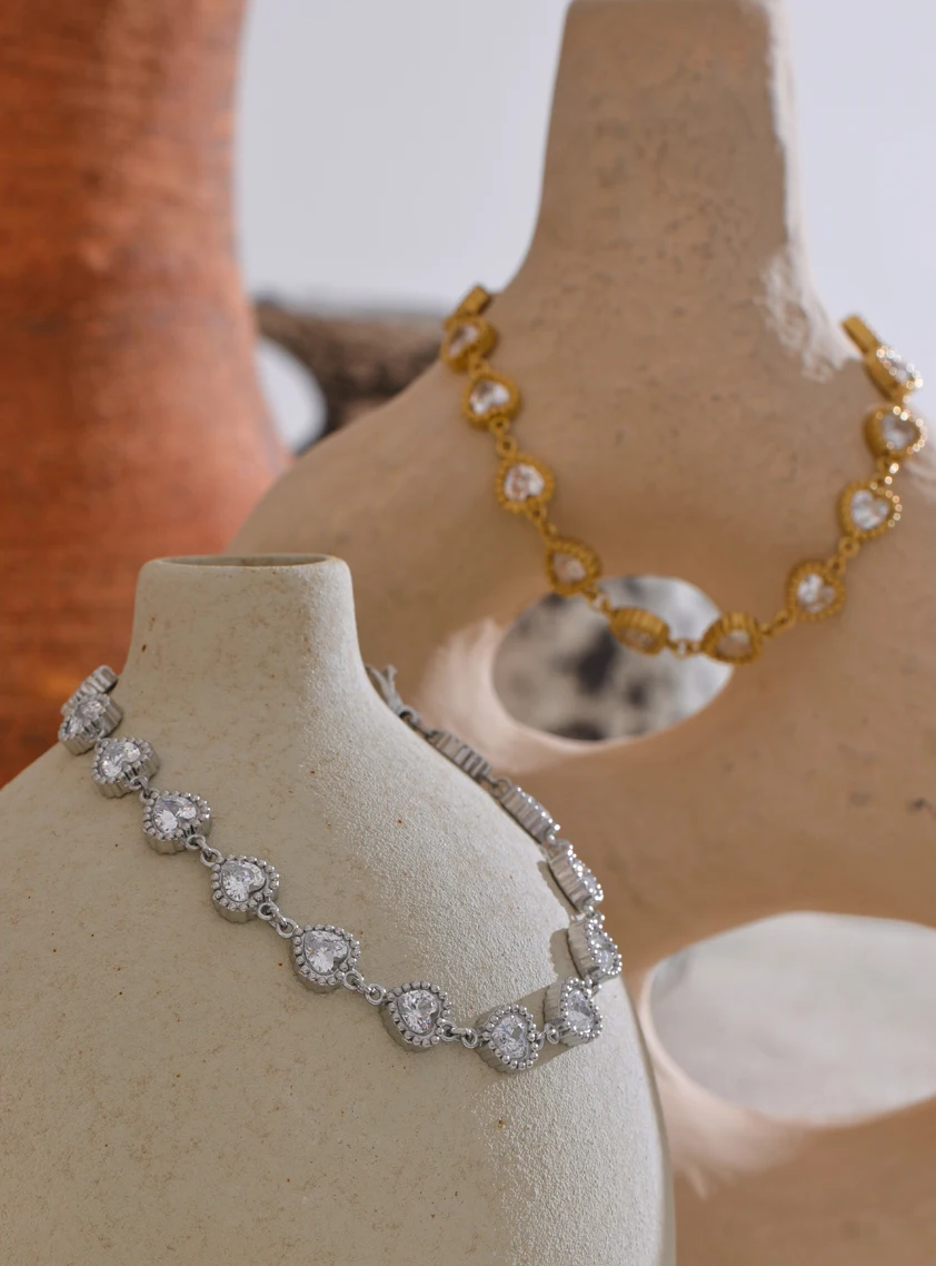 Meet Drew, the bracelet that proves romance isn't dead, it just got a serious style upgrade. Each heart-shaped crystal is delicately pavé-set and linked together in pure wrist candy perfection. It's giving "main character energy" with a side of "effortlessly chic."