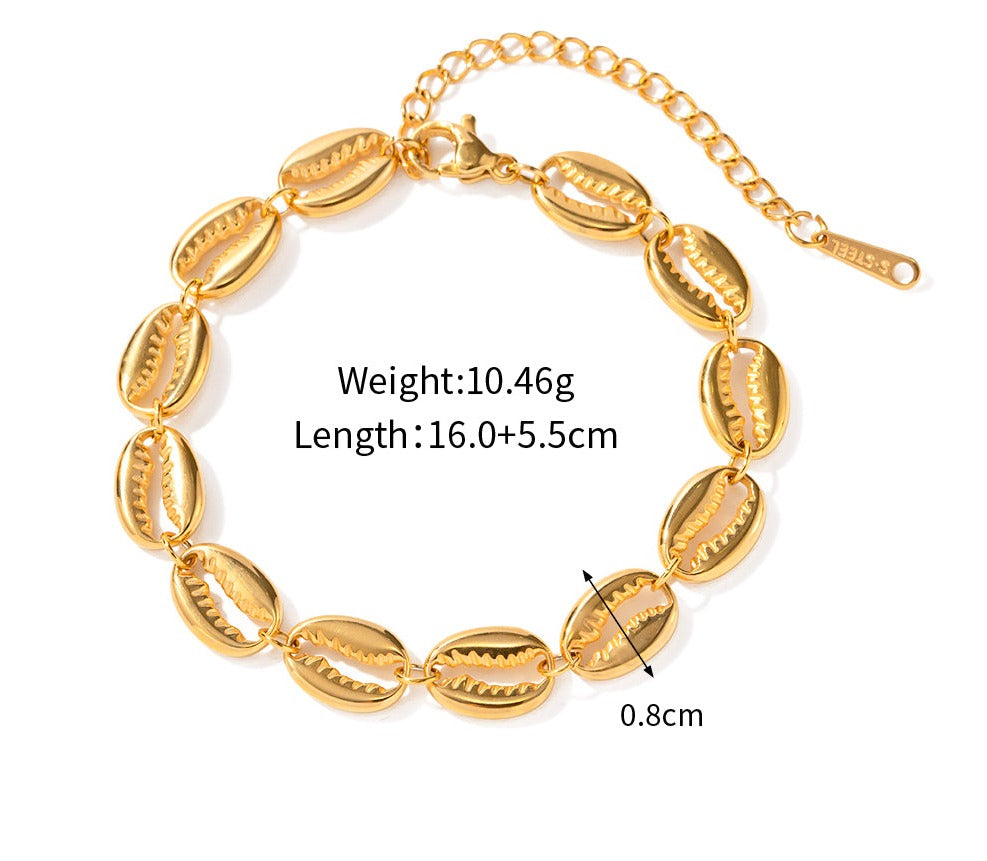 Golden Cowrie Shells Bracelet / Stainless Steel