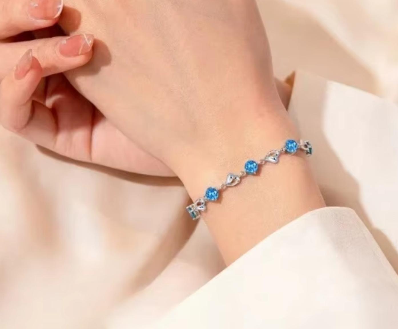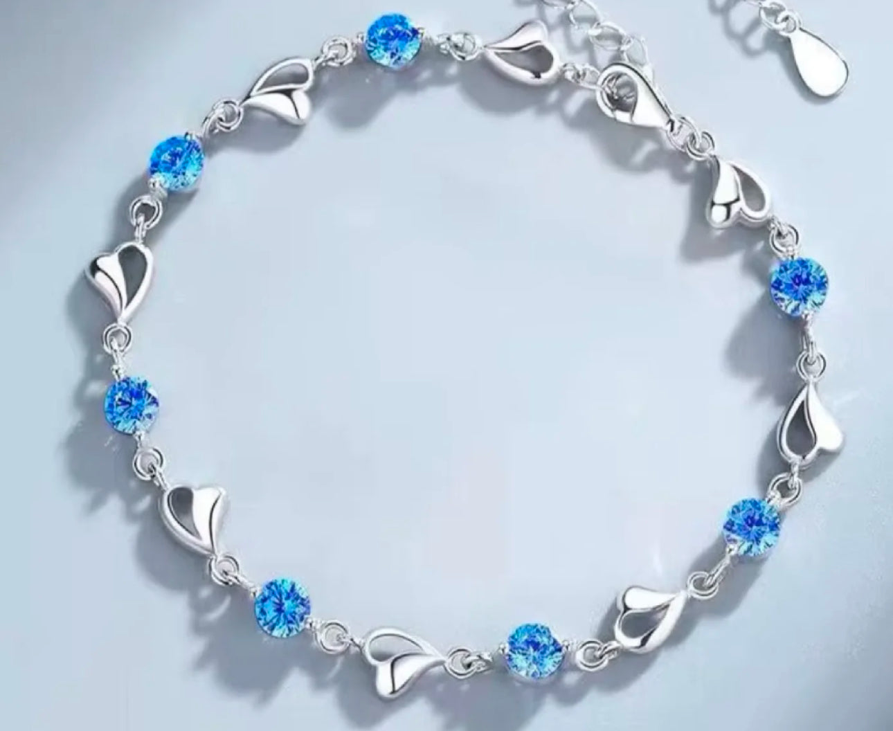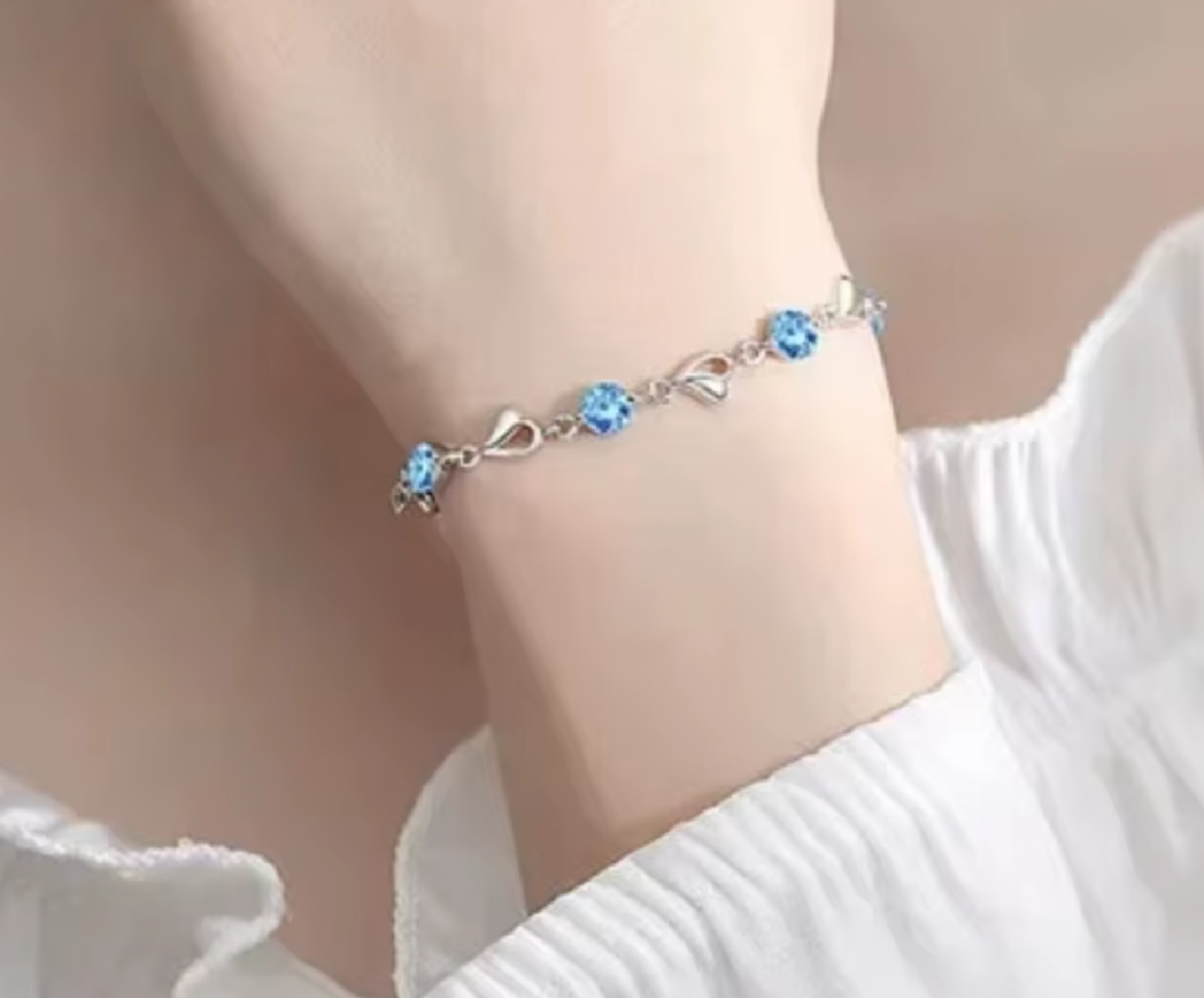 With its cute silver hearts and dazzling blue stones, this bracelet is the perfect blend of playful and polished. It’s like a hug for your wrist—flirty, fun, and totally irresistible.