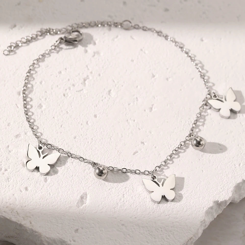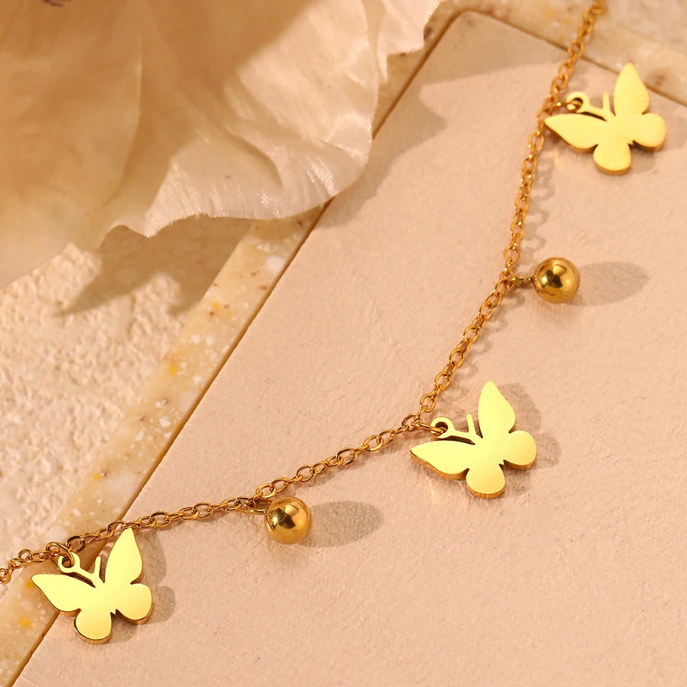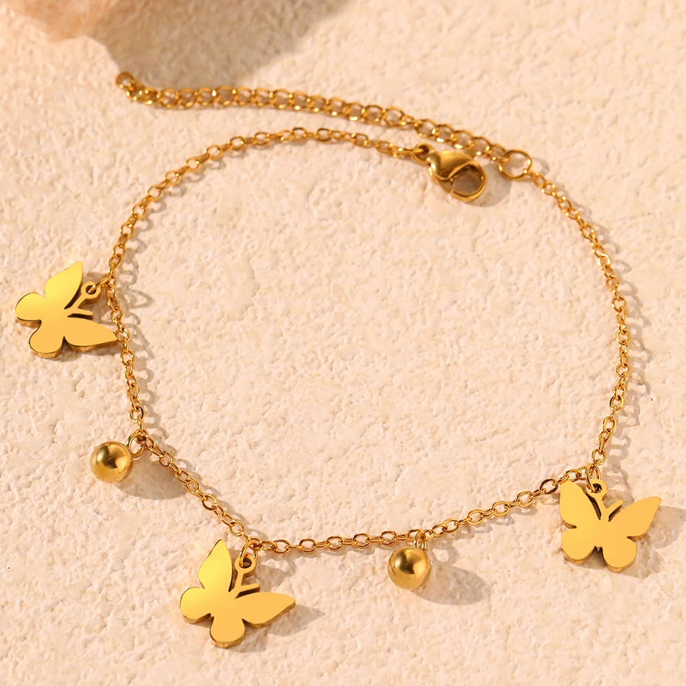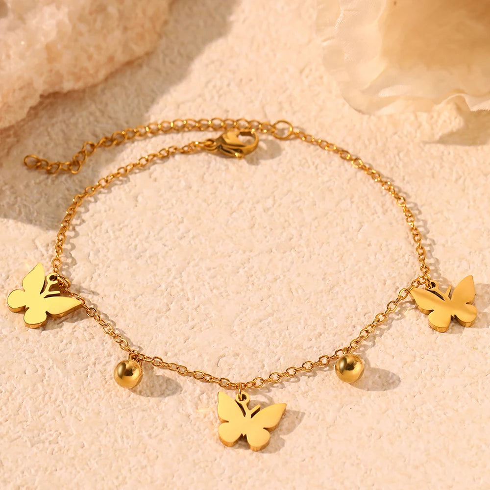 Crafted from high-quality stainless steel, these dainty chain bracelets feature exquisite golden butterfly charms that symbolize beauty and transformation.