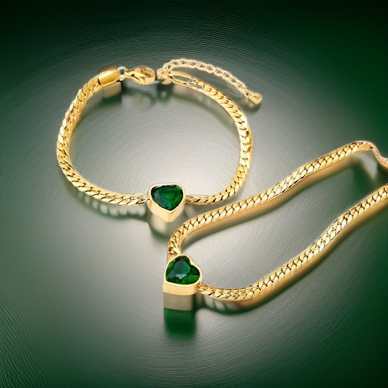 Wrapped in a chunky snake chain that's more confident than your morning strut, these bracelets feature heart-shaped zircon stones in two dazzling colors, because why settle for one when you can have a dynamic duo?