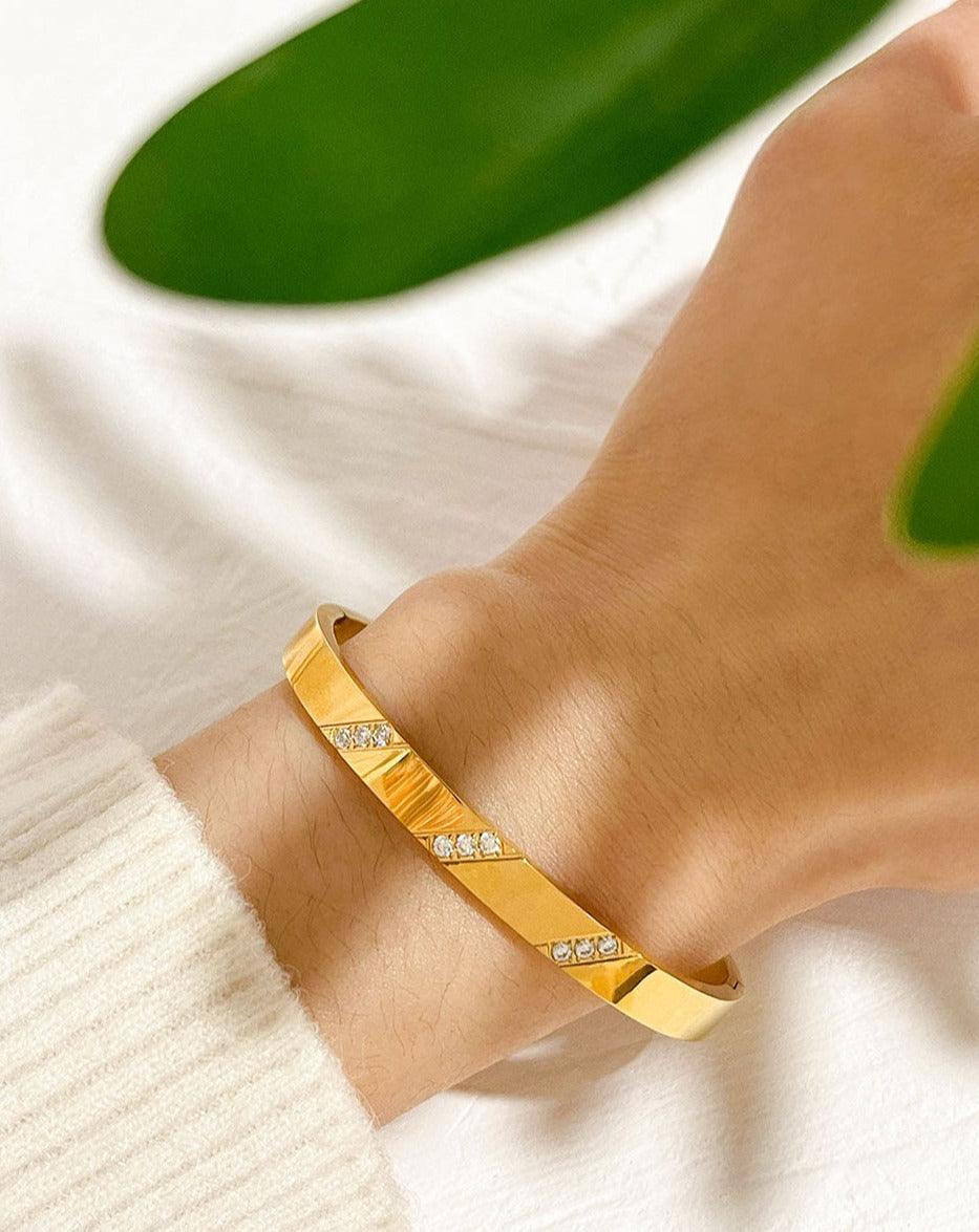Kelani Minimalist Diamond Bangle / 18K Gold Plated