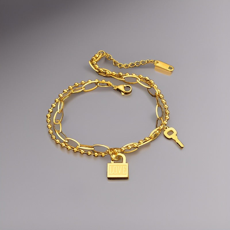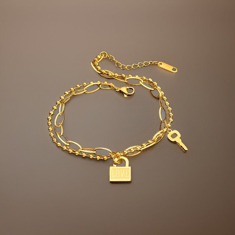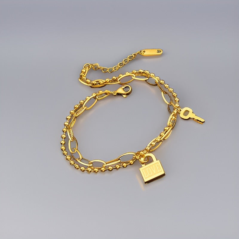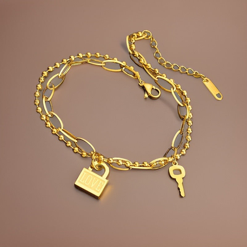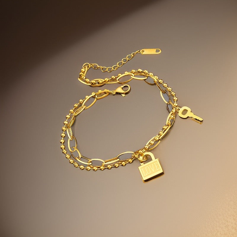 Unlock the key to style and love with our exquisite Lock & Key Charm Bracelet.