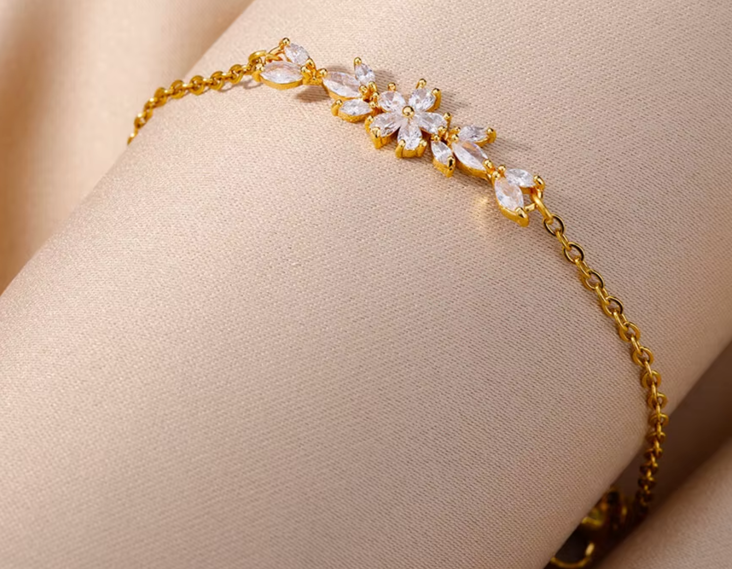 Add a touch of bloom to your look with the Lyra Crystal Flower Bracelets – where sparkle meets effortless elegance.