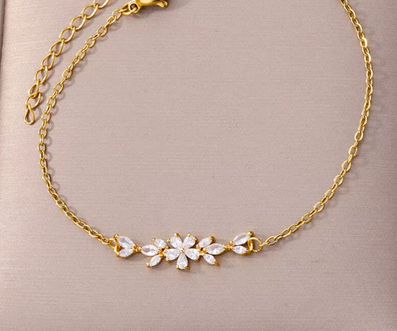 Lyra Crystal Flower Bracelets / 18K Gold Plated