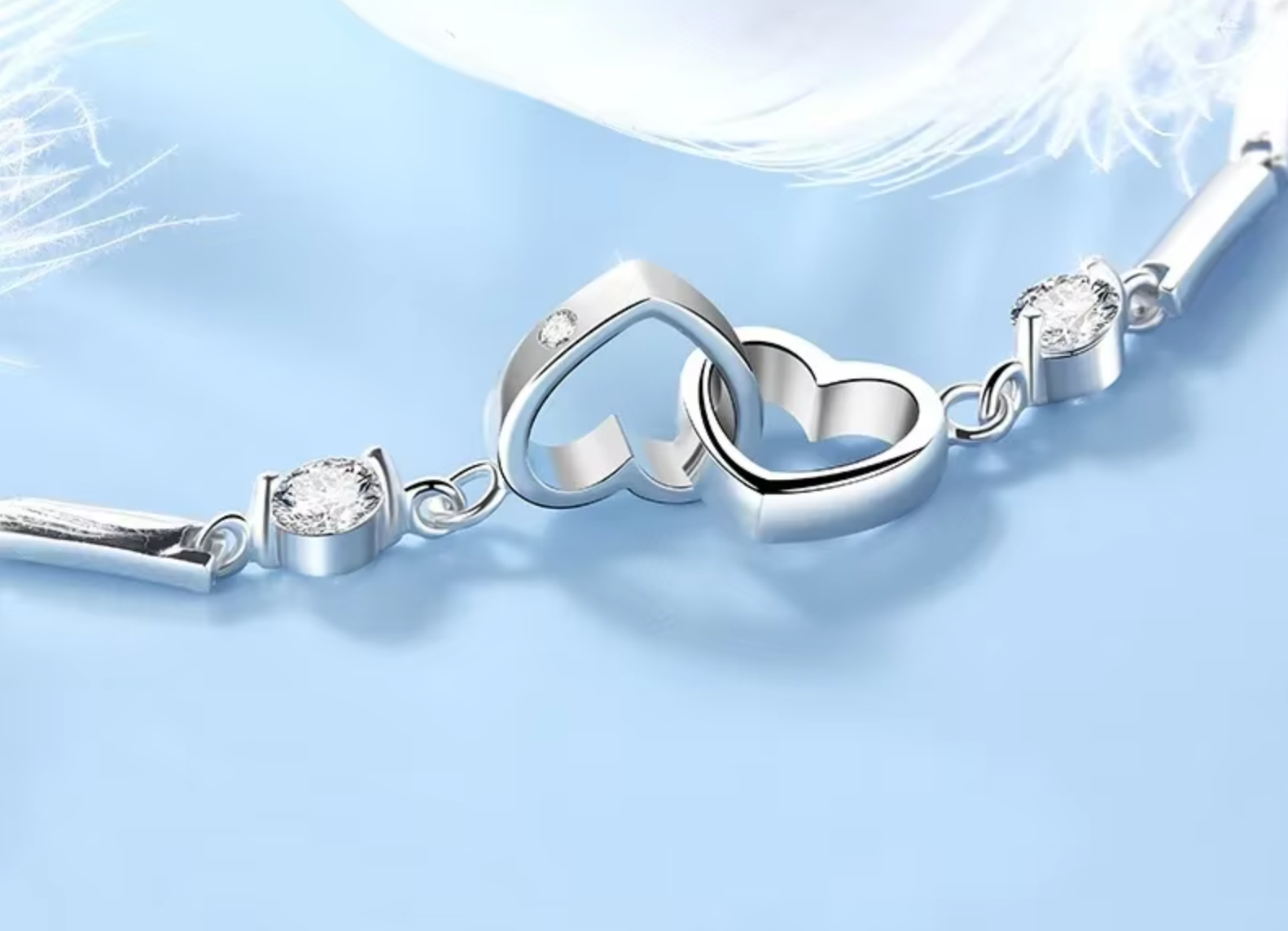 Because true love (and great jewellery) lasts forever! ✨ The Ever After Bracelet is a symbol of unbreakable bonds and timeless romance, featuring 925 sterling silver and a duo of interlocking hearts. With sparkling zirconia accents and a sleek, adjustable design, this bracelet is perfect for celebrating love, friendship, or your own fabulous self.