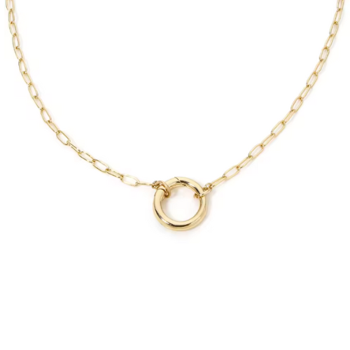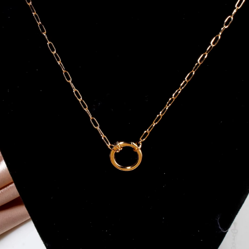 Featuring a sleek circular lock pendant on a delicate paperclip chain, this 18K gold-plated beauty is the perfect blend of minimalism and sophistication. Whether worn solo or layered for a bolder look, this necklace is waterproof, tarnish-resistant, and made to shine forever—just like you.