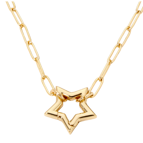 Paperclip Chan & Star Lock Charm Necklace / 18K Gold Plated