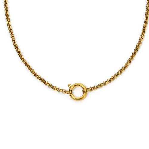 Timeless elegance meets modern edge with the Seraphina Charm Lock Chain. Featuring a bold yet sophisticated chain and a sleek circular lock clasp, this 18K gold-plated statement piece is designed for effortless luxury.