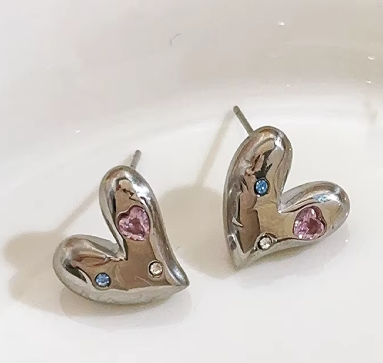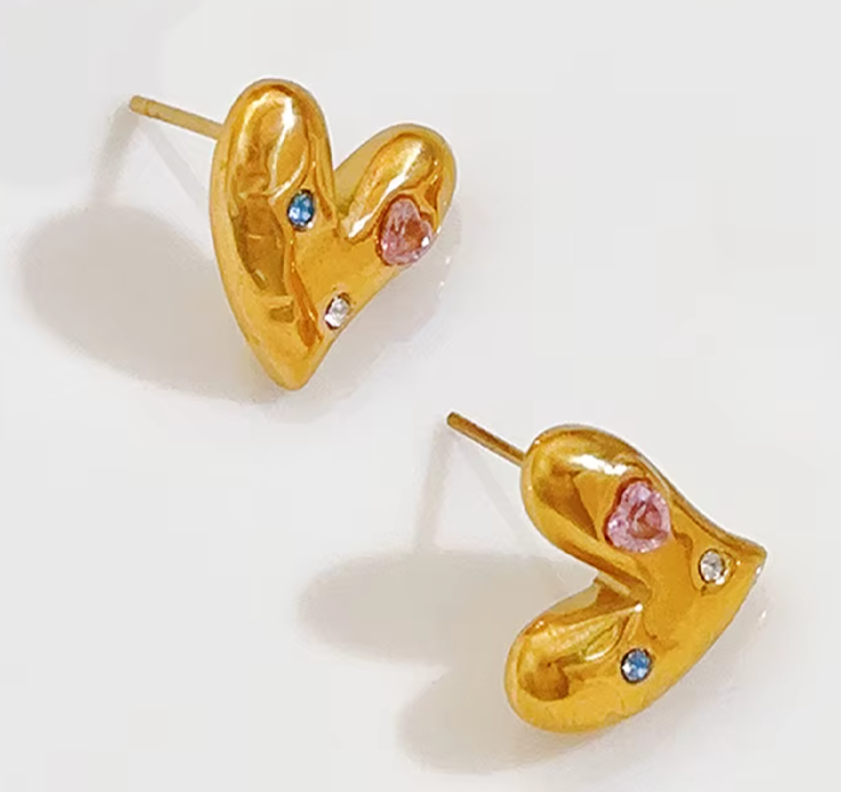 These sculpted molten hearts, are sprinkled with delicate gemstone accents, making them the perfect balance of bold, playful, and timeless.