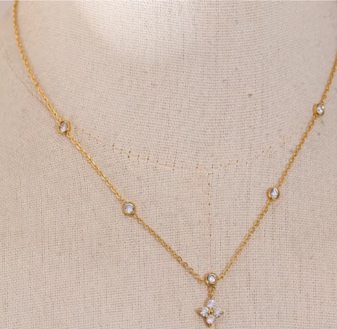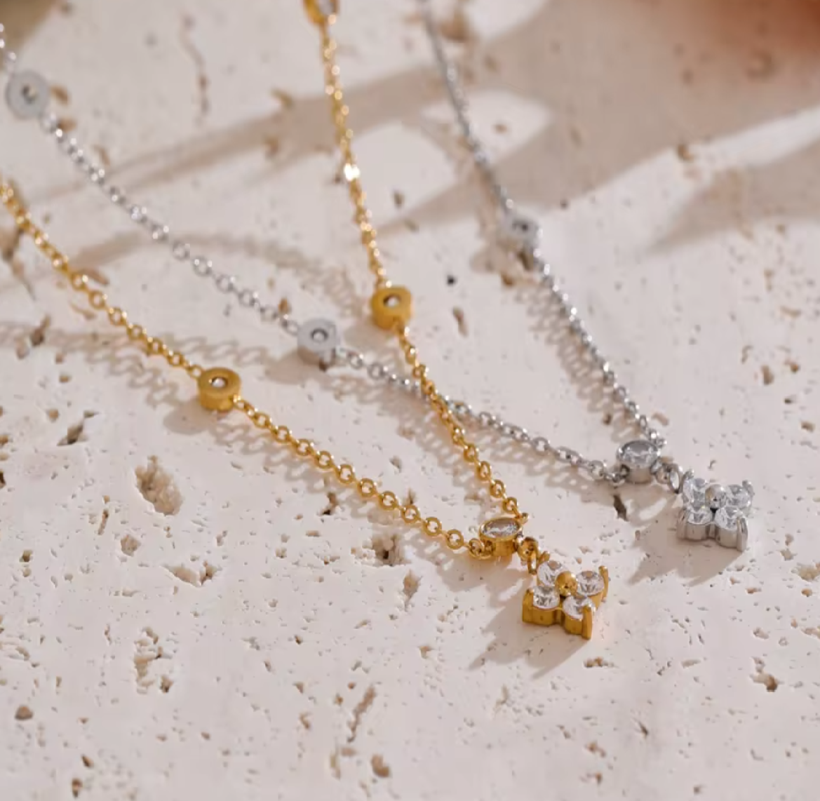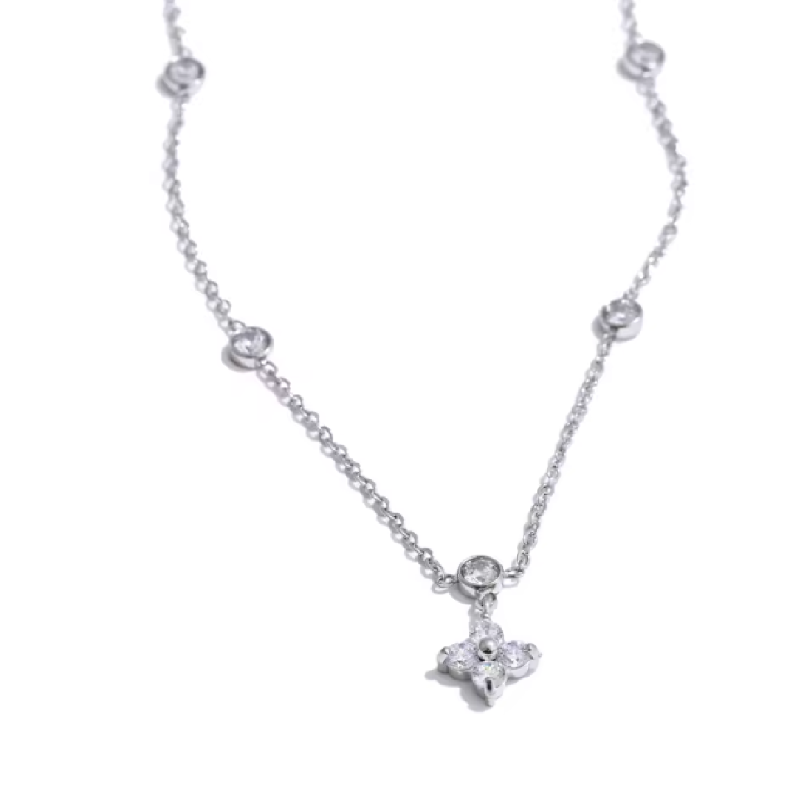 Minimalist sparkle with major main character energy. The Gaia Clover Necklace is your new everyday lucky charm, featuring a dainty clover pendant made from glistening marquise-cut crystals, set on a sleek chain dotted with tiny sparkle stations.