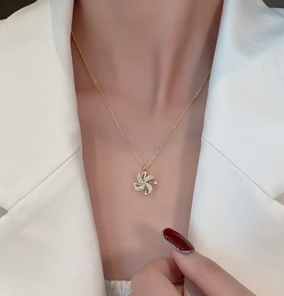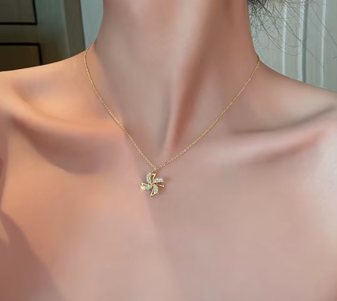 Whether as a personal indulgence or a thoughtful gift for special occasions, the Hunter Rotating Windmill Necklace is more than just jewelry; it's an emblem of elegance and grace.