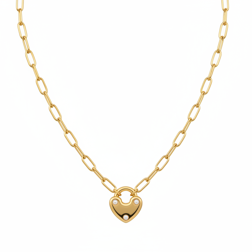 The Pearl Heart Lock Necklace