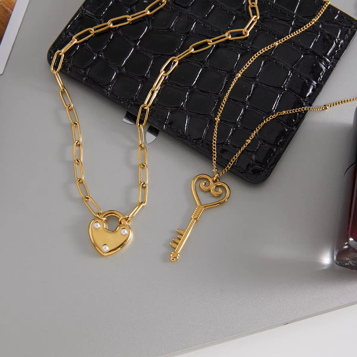 The Pearl Heart Lock Necklace blends classic pearls with a heart-shaped lock for a look that’s equal parts timeless and modern.