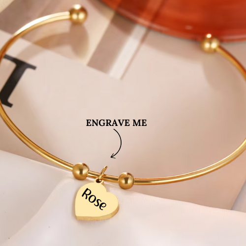 Elaine Personalised Heart Bangles / 18K Gold Plated