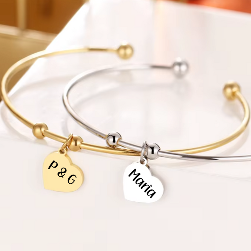 Say hello to your next signature accessory! The Elaine Personalised Heart Bangles are a dazzling mix of timeless elegance and modern flair.