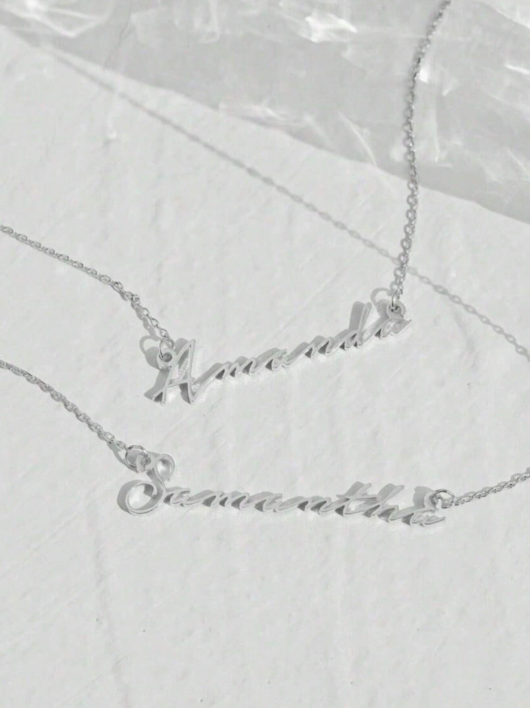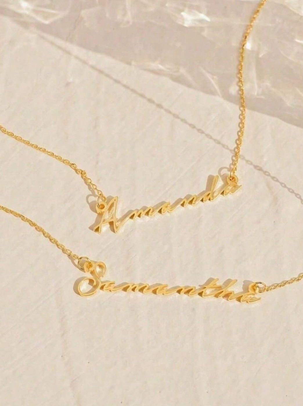 Crafted from high-quality titanium steel and available in silver or gold, each necklace is meticulously customized with your chosen name.