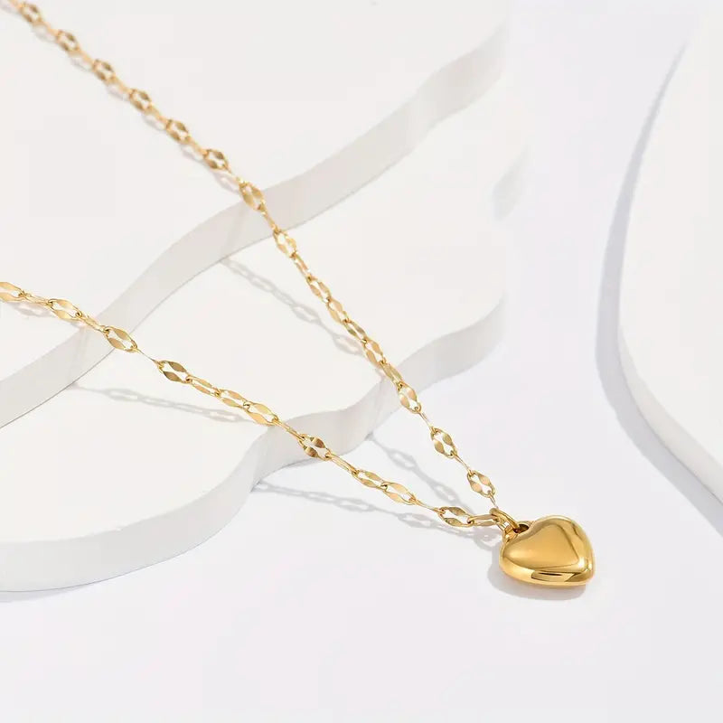 Made with 18K gold plated stainless steel, this necklace boasts a gorgeous heart pendant on a link chain that's sure to capture your heart.