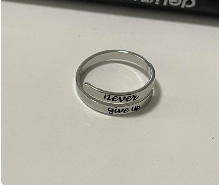 Crafted from stainless steel, these rings feature a spirited engraving of "Never Give Up" on the band, ensuring that every glance at your finger fuels your determination.