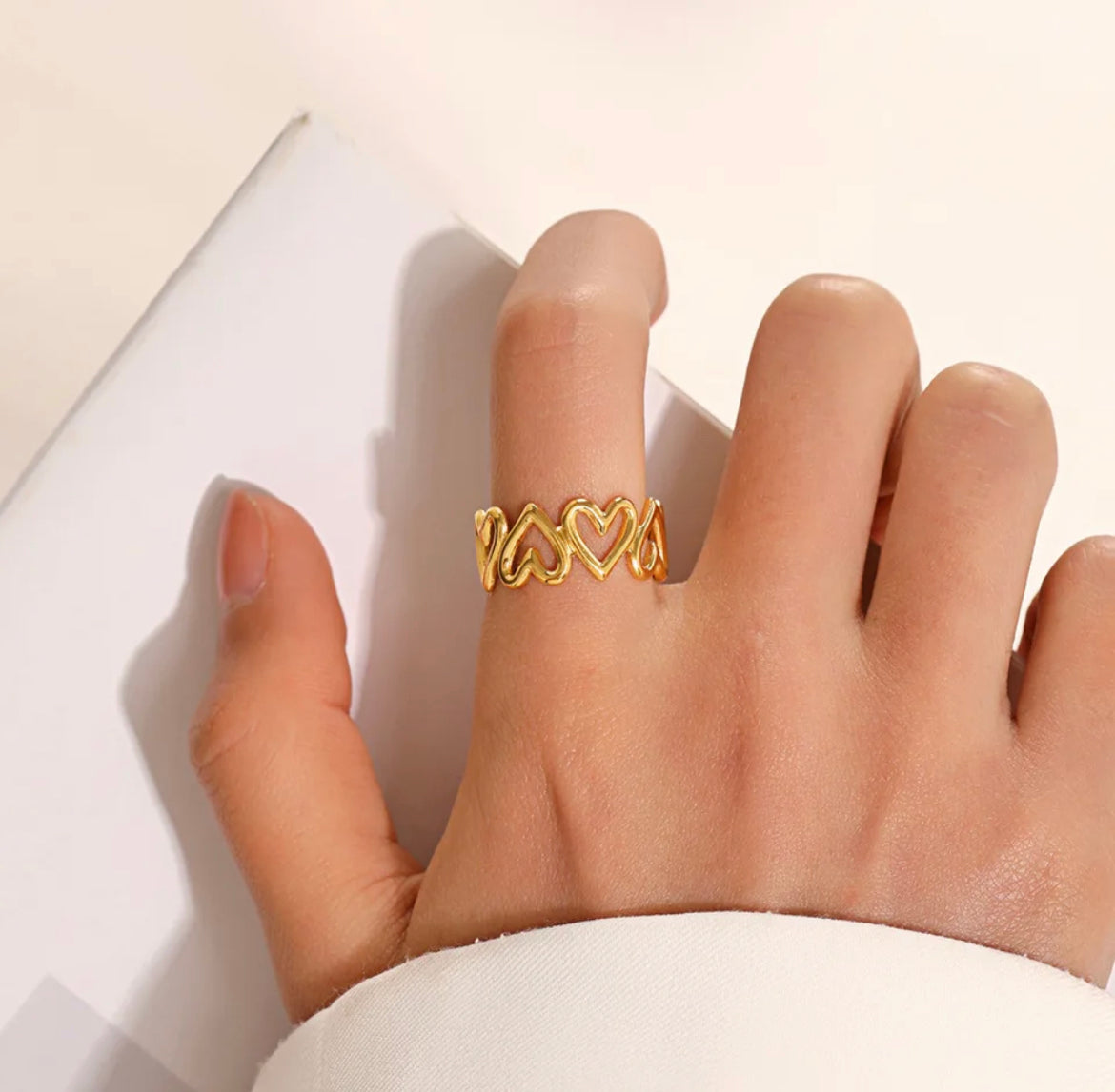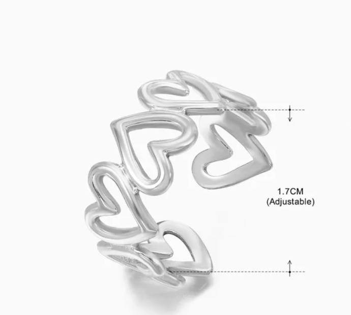 Crafted from high-quality stainless steel, this ring features an adorable love hearts design that will make your heart skip a beat.