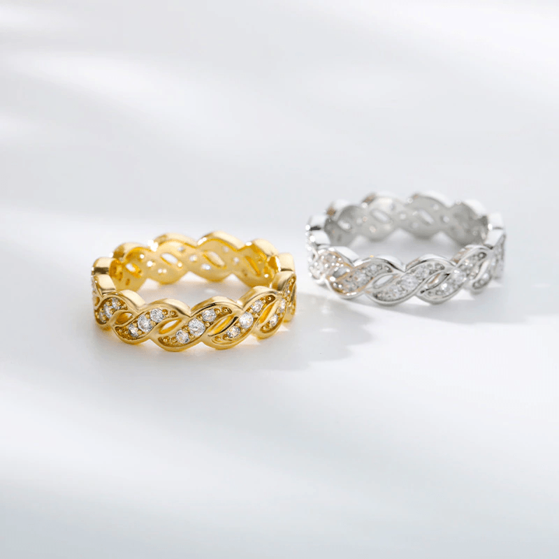 The ring is studded with gorgeous and sparkly high quality zircon stones product and comes in either silver or gold.