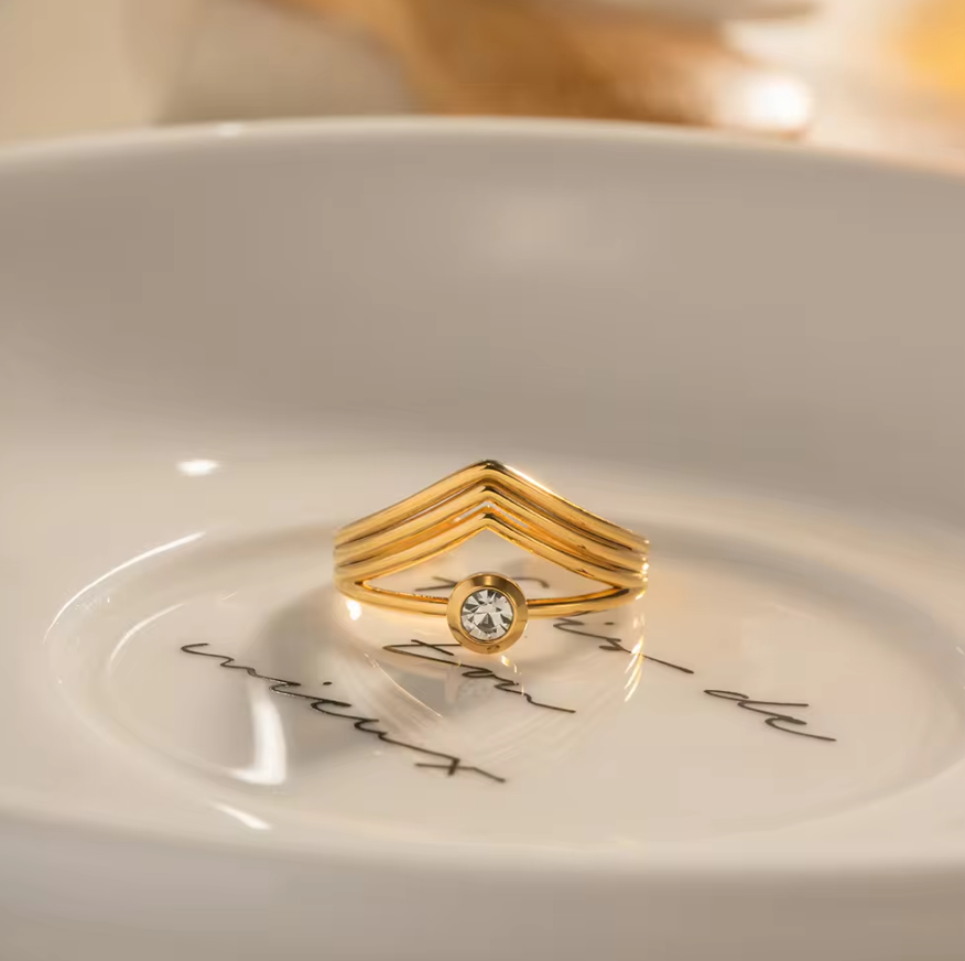 Pia Multi Chevron Zircon Ring / 18K Gold Plated