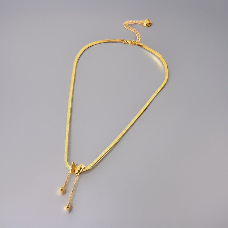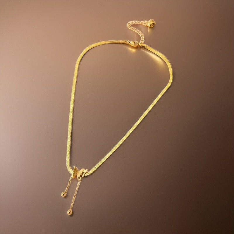 Crafted with love from stainless steel, this gold necklace features a mesmerizing butterfly pendant with glittering wings that catch the light with every move.