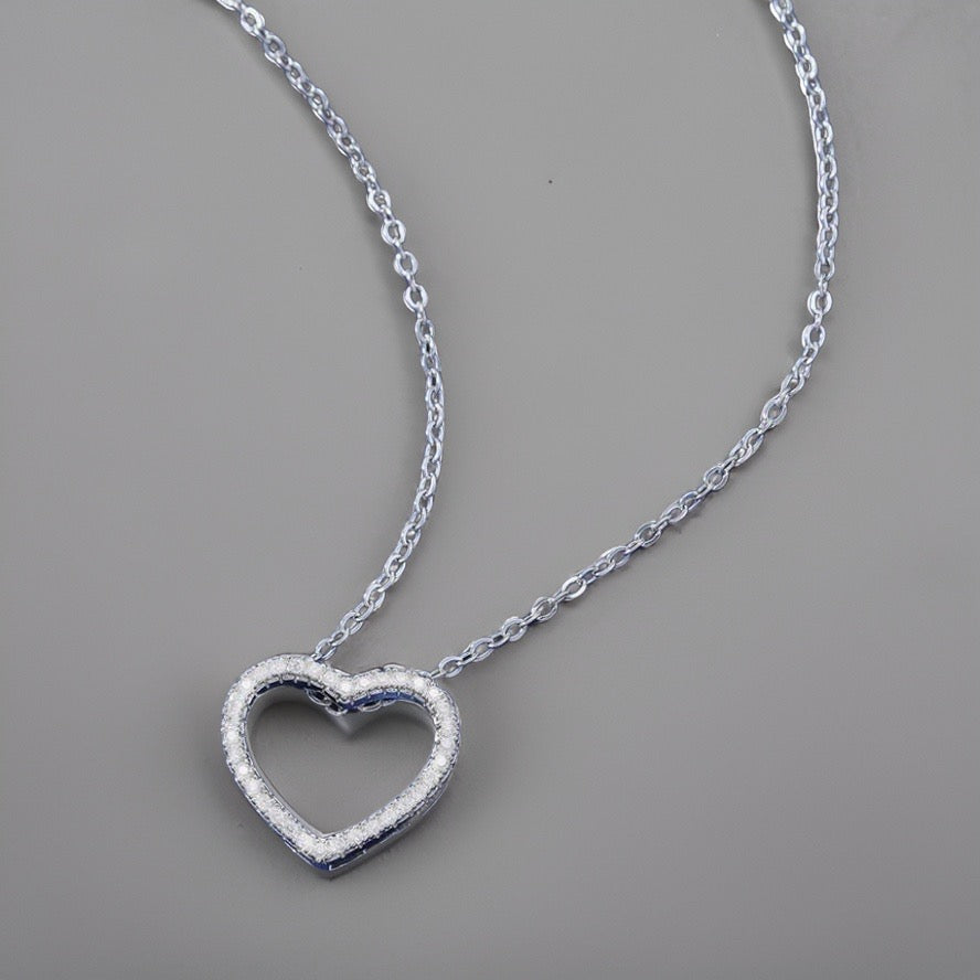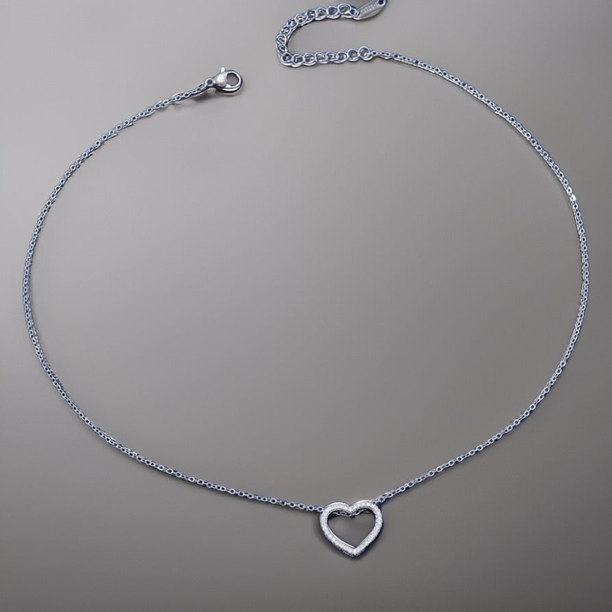 Crafted from high-quality stainless steel, this necklace features a captivating heart pendant adorned with glittering crystals, adding a touch of sparkle to any outfit.