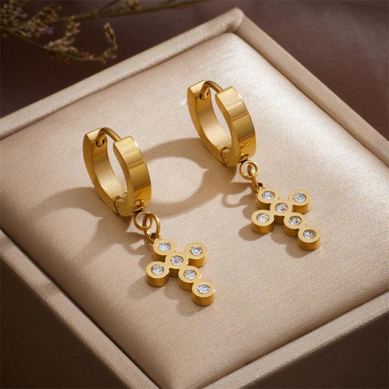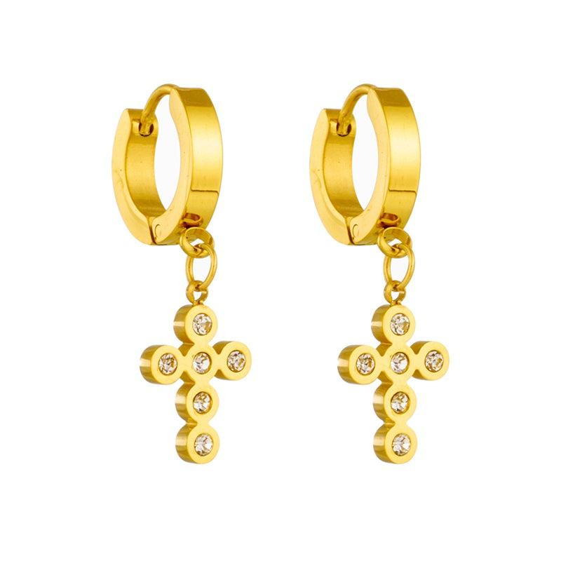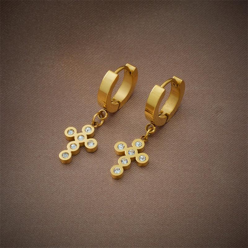 Elsa Diamond Cross Huggie Earrings / Stainless Steel