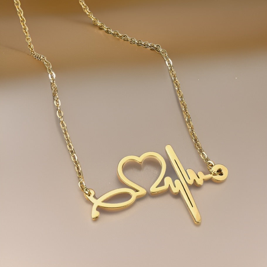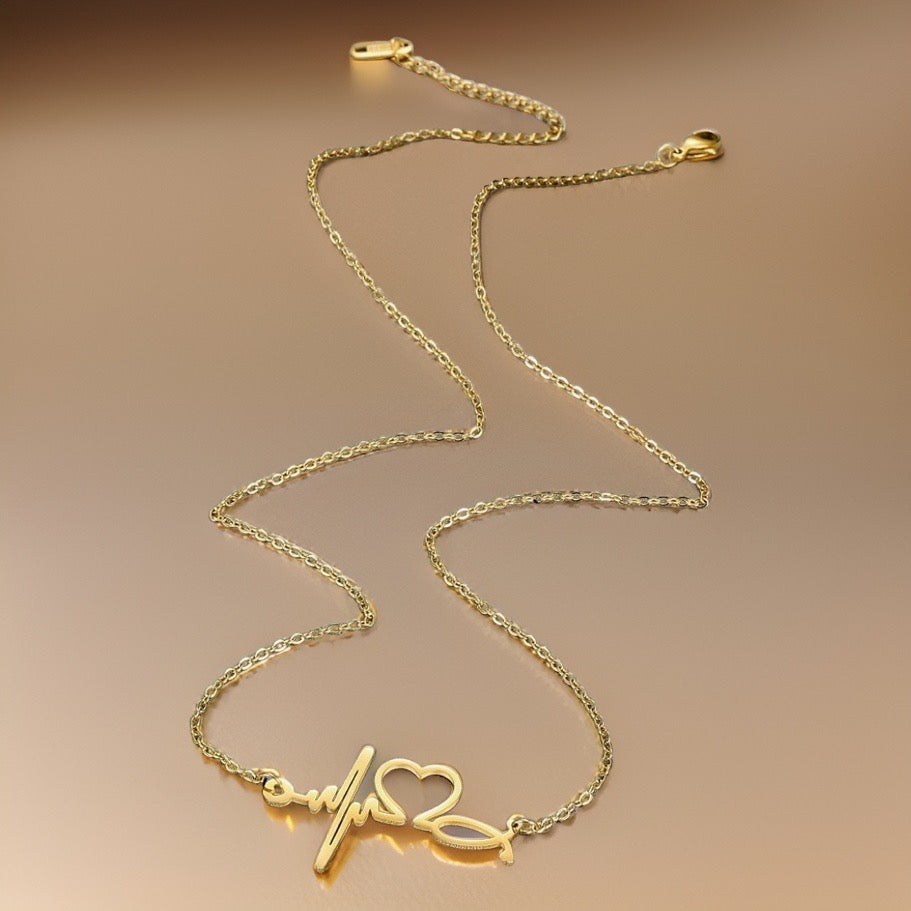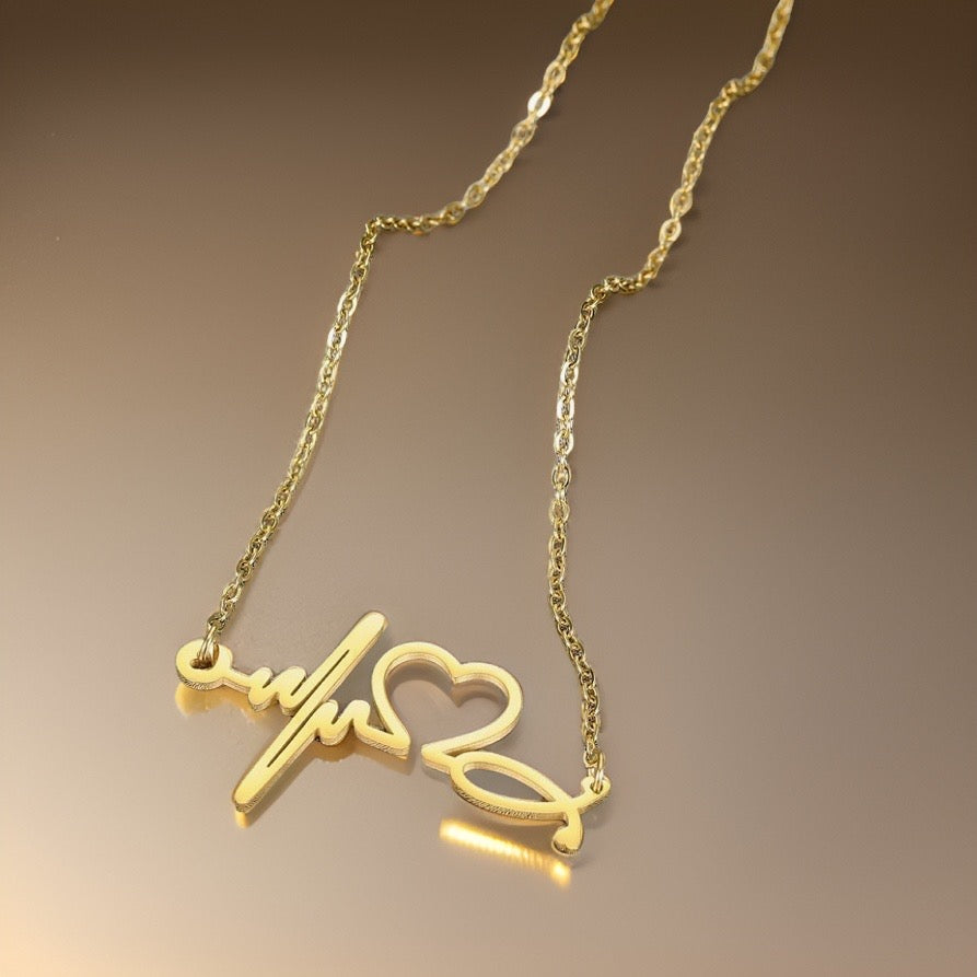 Made from high-quality stainless steel, this necklace features a delicate heartbeat pendant that symbolizes the rhythm of love.