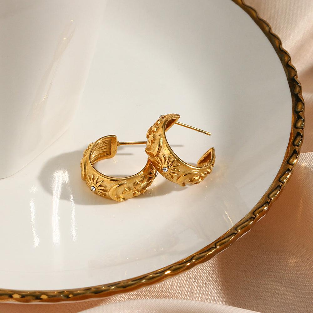 Add a touch of celestial charm to your outfit with the Jordan Celestial Hoop Earrings!