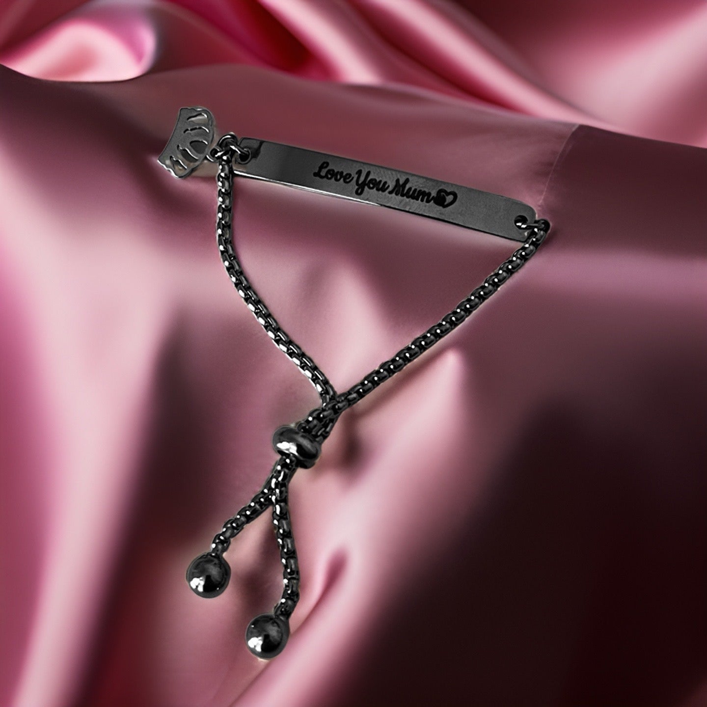 Show your love and appreciation for your mom with our "Love You Mum" Crown Slider Bracelets.