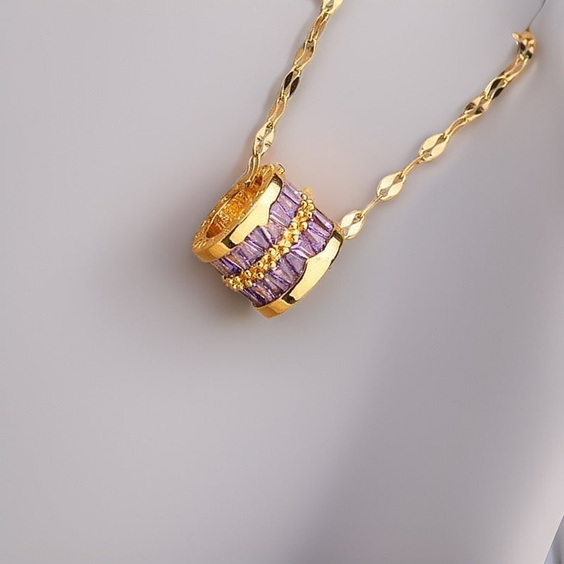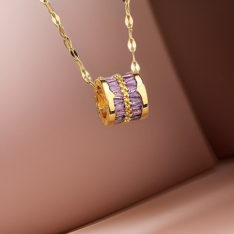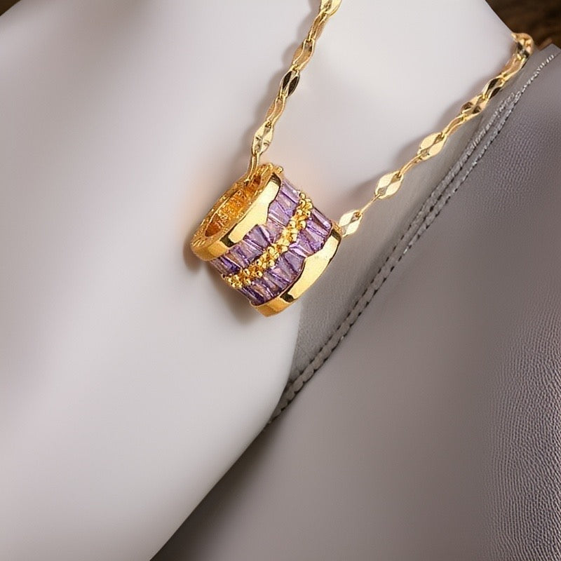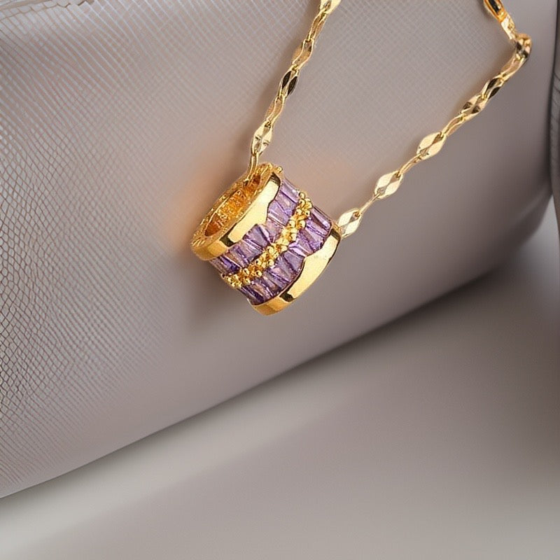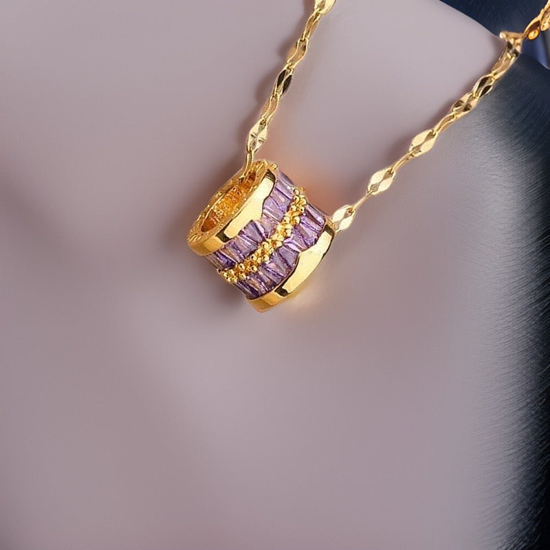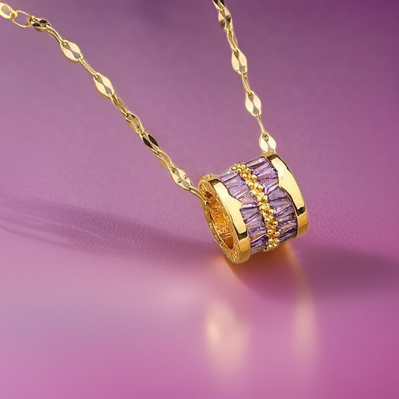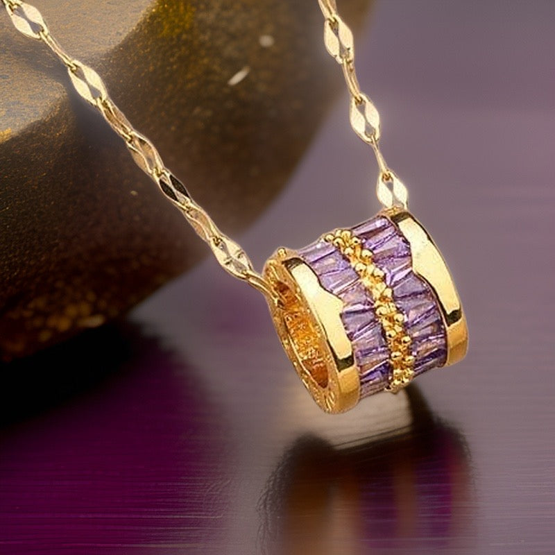 This adjustable 45cm link chain comes with a gold totem barrel striped with purple baguette crystals is beautifully high shine and is made of durable and waterproof materials.