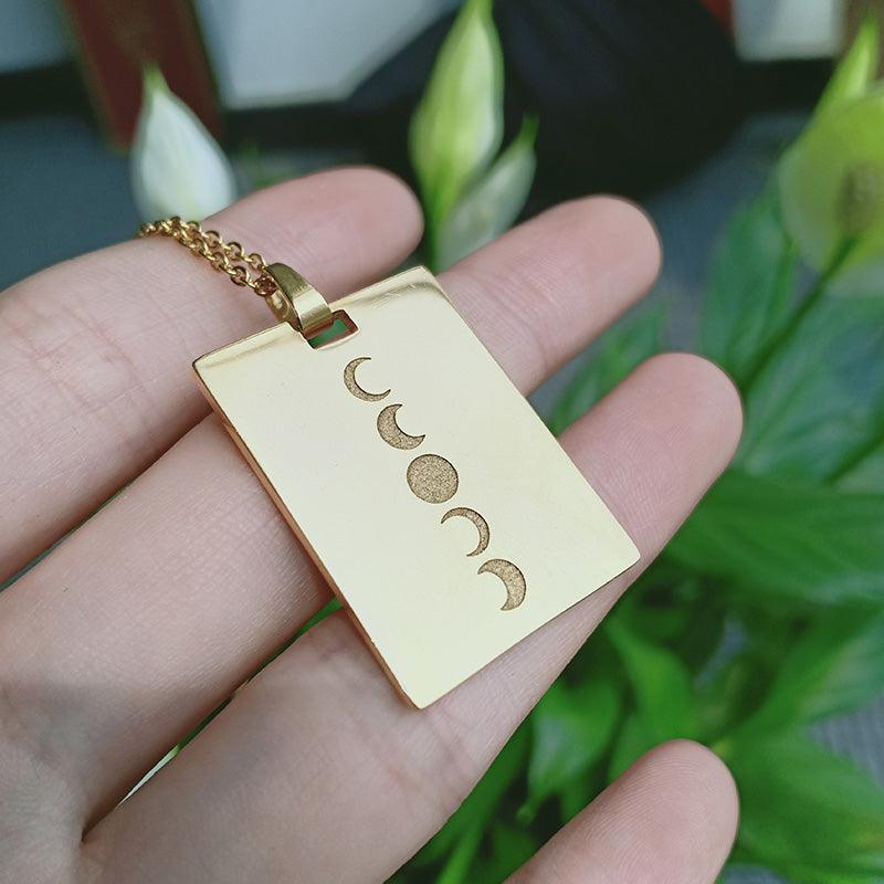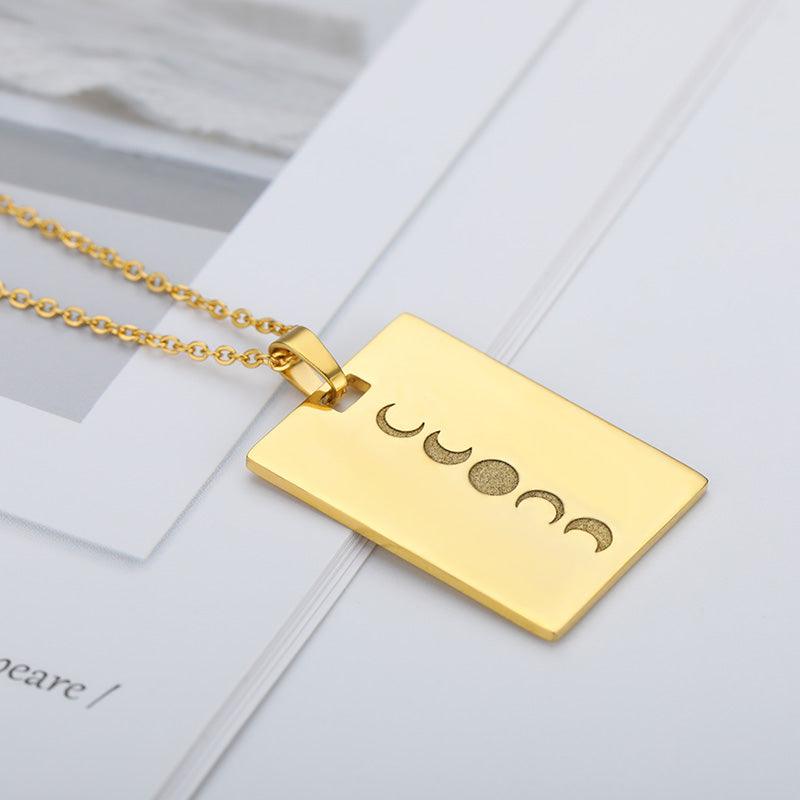 Introducing the stunning Selene Moon Phases Pendant, crafted from top-quality stainless steel and plated in lustrous gold.