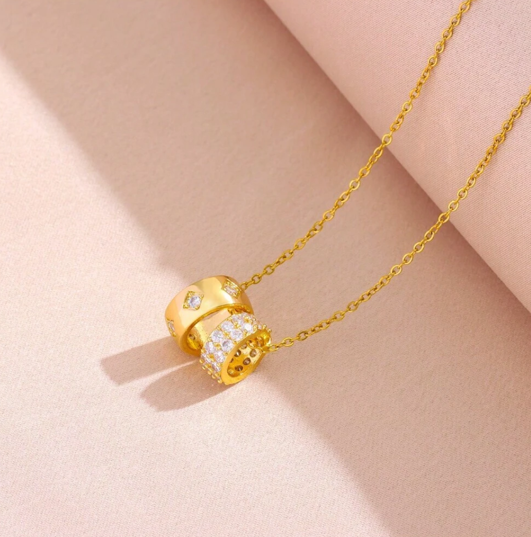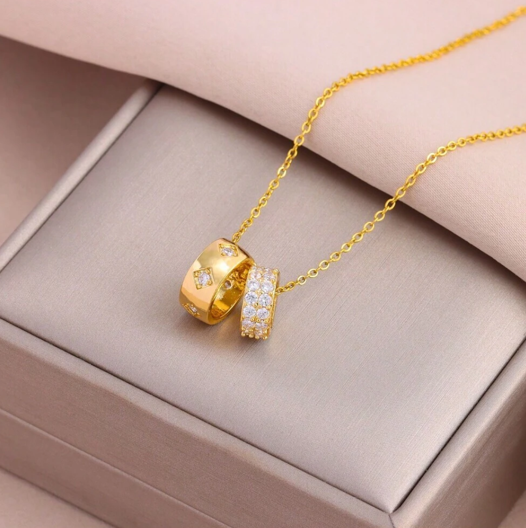Double the rings, double the elegance! The Suzanne Double Ring Necklace is a flawless combination of sparkle and sophistication.