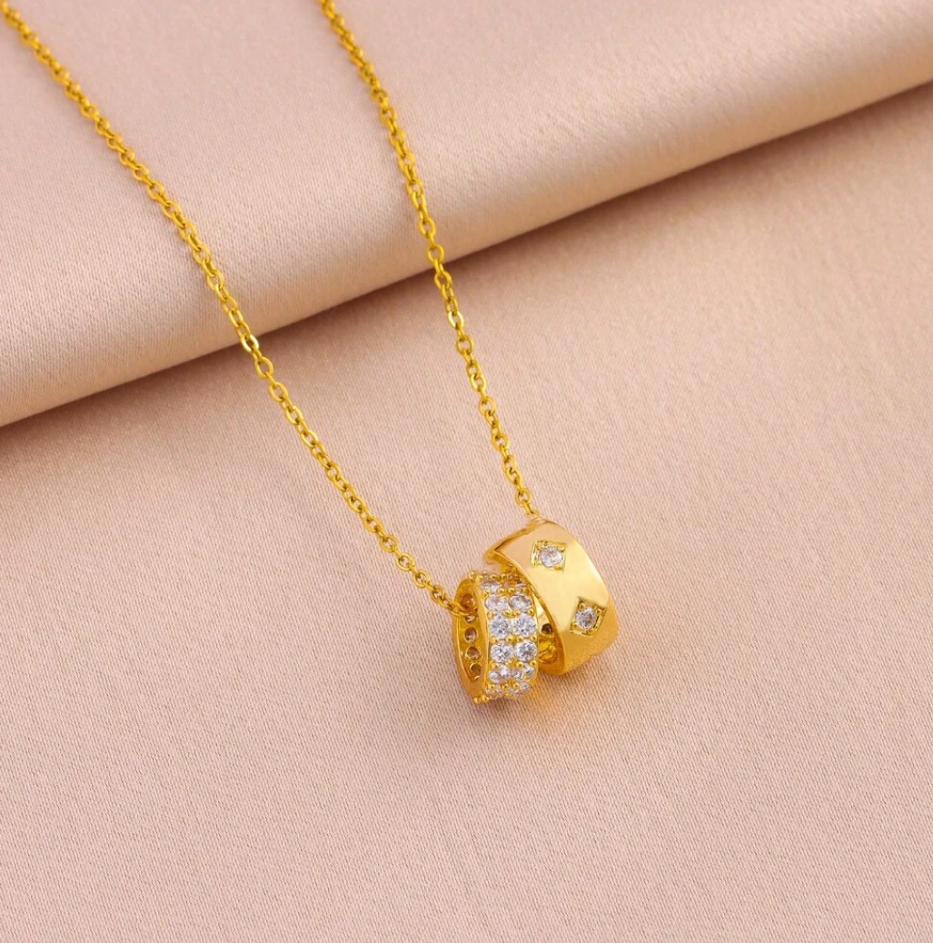 Suzanne Double Ring Necklace / 18K Gold Plated