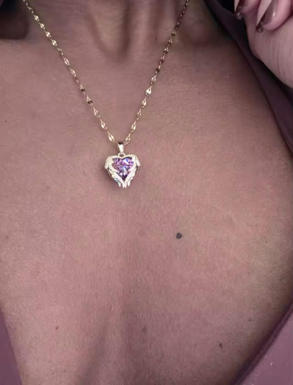 Crafted from high-quality stainless steel, these necklaces feature a beautiful heart-shaped pendant adorned with a breathtaking multicolored zircon diamond stone at its center. The adjustable length ensures a comfortable fit for anyone.
