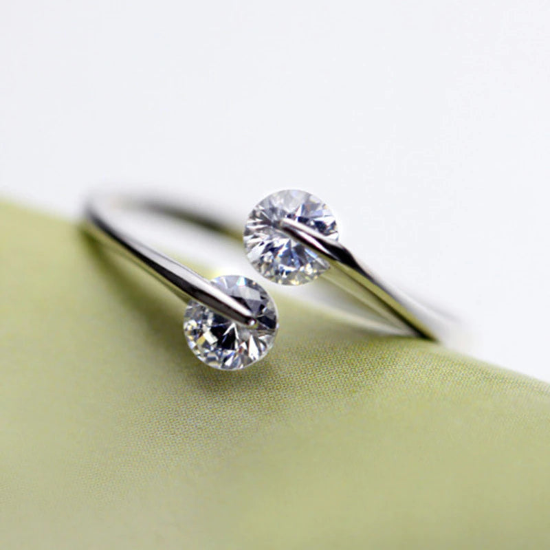 Featuring two high shine zircon stones set in a beautiful silver band, this double stone ring is the perfect piece to add to your jewelry collection.