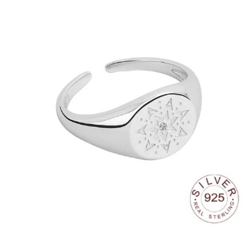 Crafted from high-quality 925 sterling silver, these rings feature a stunning starburst pattern on the front, accented with a dazzling zircon diamond at its center.