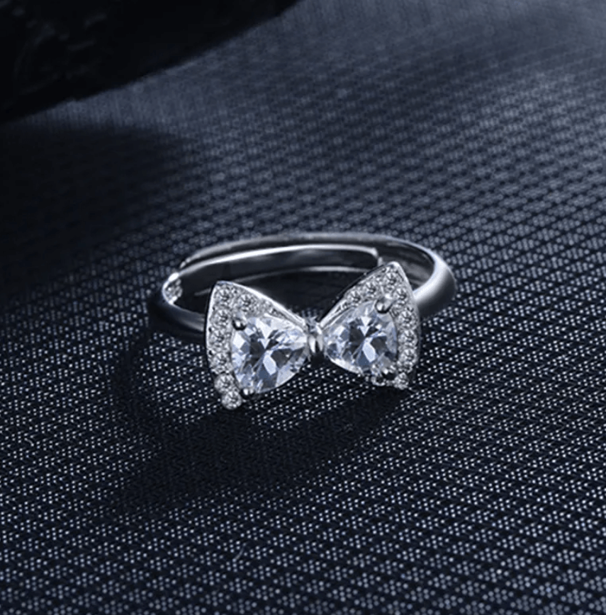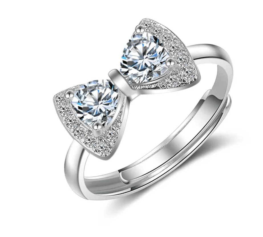 The adjustable band ensures a comfortable fit for any finger size, while the gorgeous bow design, encrusted with diamond zircon stones, adds the perfect touch of elegance and glamour to any outfit.