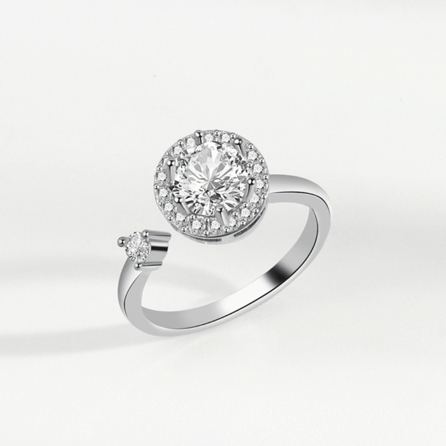 Featuring a large moissanite diamond stone that spins to help relieve anxiety and stress, this ring is not only beautiful but also offers a truly calming experience.