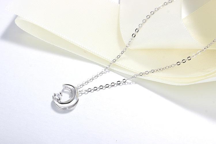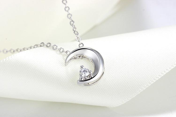 Crafted from high-quality 925 sterling silver, this necklace features an adjustable length for the perfect fit, and a crescent moon pendant with a dazzling high shine diamond zircon on the end.